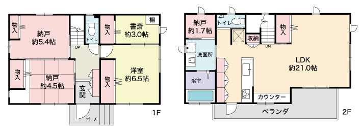 - ■全居室6帖以上■1、2階に和室あり■1、2階に洗面化粧台あり■1、2階にトイレあり■カースペースあり(車種による)■約4帖のクローゼットあり