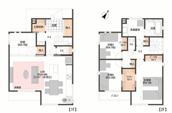 ■4LDK+2WIC 1階LDKには床暖房設備有り