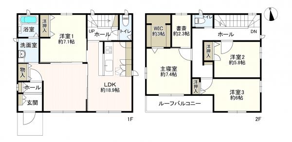 テレワークに便利な書斎スペースやルーフバルコニー、各階のトイレなど、日常の使い勝手を考慮した設計が魅力。水回りの動線も良好で、忙しい朝の時間帯もスムーズに過ごせます。