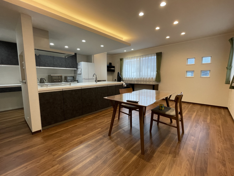 1階のLDKは約19.8帖と広々とした空間です。ご家族が集まるリビング・ダイニングとして、ゆったりした時間をお過ごしいただけます。