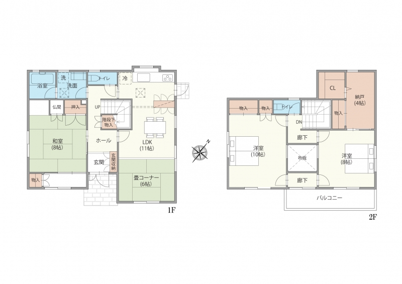 ・2階居室は8帖以上を確保、それぞれ2ドアで動線スムーズ