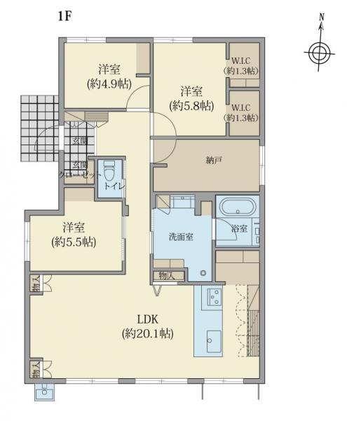 - 4LDK+S(納戸) + ウォークインクローゼット