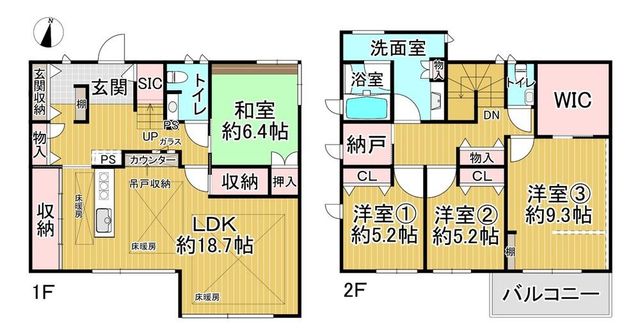 ●全居室および各階ホールに、WICを含む収納スペース有。