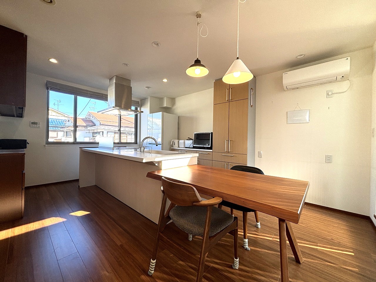 ●キッチンはL型の対面式。IHクッキングヒーター・食器洗乾燥機搭載です。