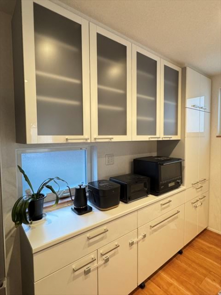 ●キッチンはL型の対面式。IHクッキングヒーター・食器洗乾燥機搭載です。