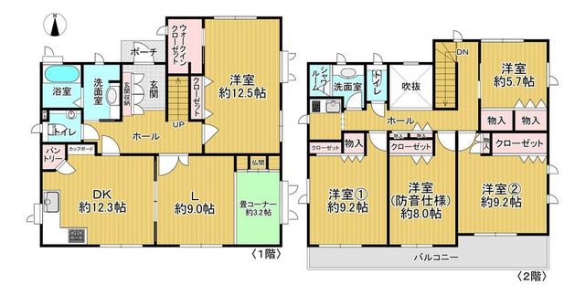 耐震性の高いツーバイフォー工法(枠組壁工法)の2階建〈5LDK 〉