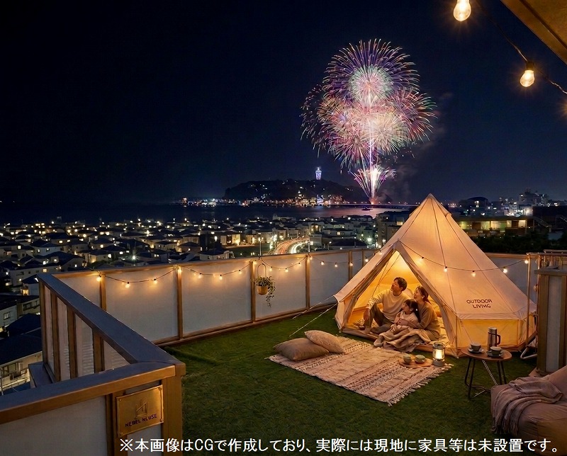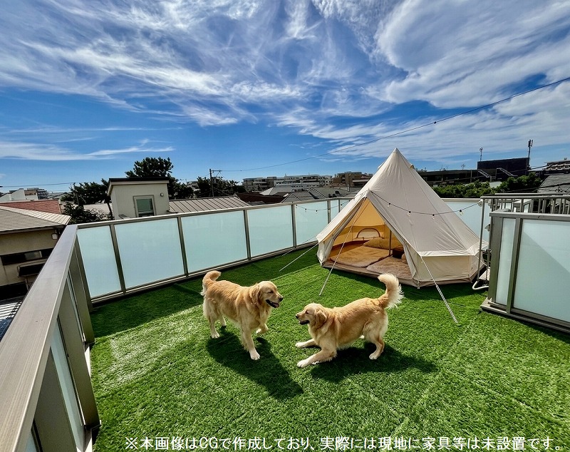 ■ テントを張ってアウトドアリビングやドッグランにも使える屋上!