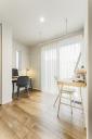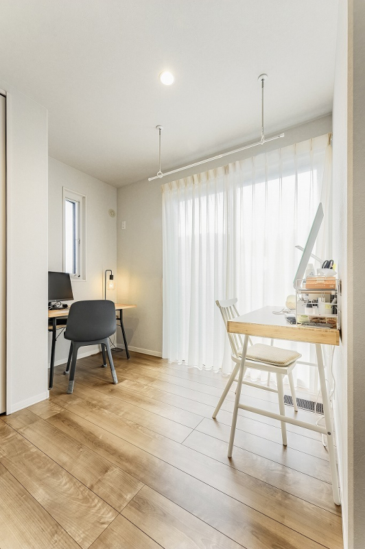 南側の窓から明るい陽光が注ぐ空間。壁付けにデスクを置いて、ワークスペースとしての活用もいいですね。