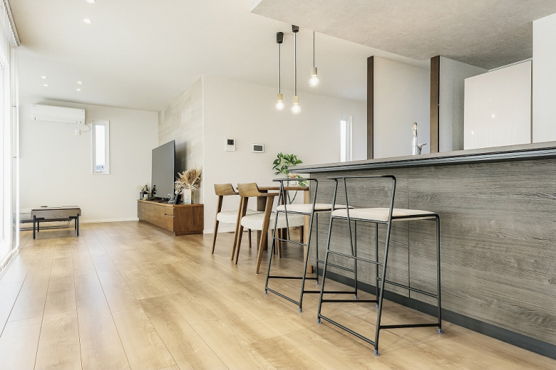キッチンカウンターに椅子を置いて、お洒落なカフェスタイルのコーディネートも良いですね。