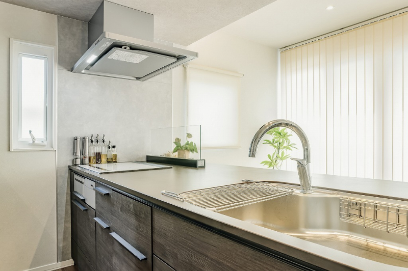 リビングの様子が見渡せる、開放感のあるキッチン。ワークトップも広く、調理のレイアウトを選びません。