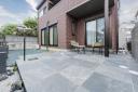 タイル敷きのスペースがあり、机や椅子を置いて休日にはお庭でティータイムなども楽しめそうです。