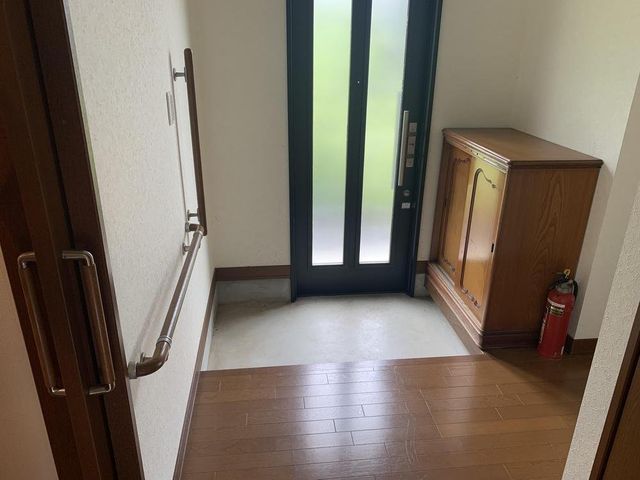 【玄関】東向きに設けられています。コの字型のシューズボックス有。カウンター部分は、飾り棚などとして利用可能です。