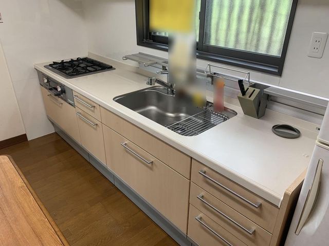 【キッチン】壁付けタイプです。上下に収納スペースが備わっており、調味料・調理器具などを収納していただけます。