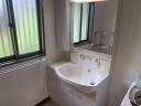 【洗面所】シャワー水栓+3面鏡付きの洗面化粧台が設置されています。ボウル下に収納スペースがあり、リネン類などを収納可能です。