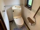 【2階トイレ】背面に棚があり、トイレットペーパーのストックが可能です。