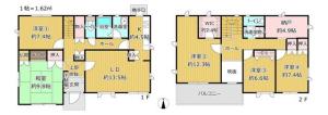 。全居室6帖以上!和室・2階各洋室に、WICを含む収納スペース有。洗面化粧台とトイレは、各階に備わっています。