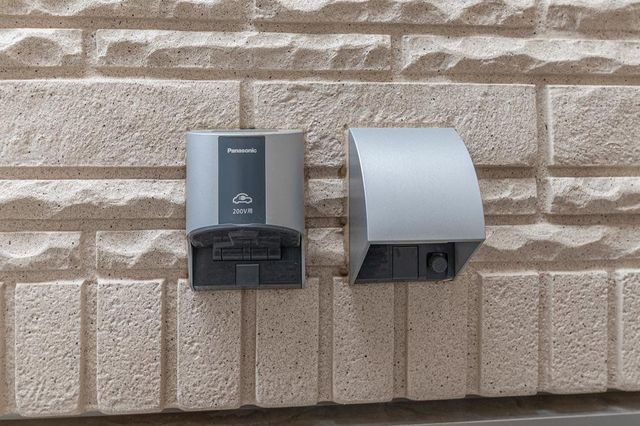 外構部分に、EV車充電用コンセントが備わっています。/2025年5月撮影