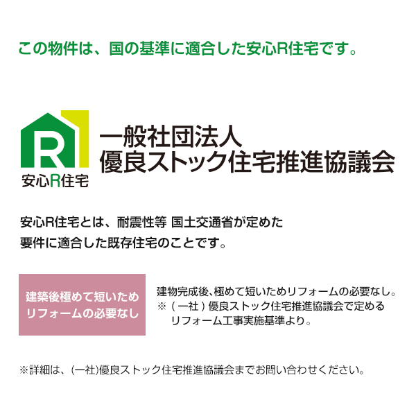 「フラット35」の技術基準に適合している住宅。「スムストックで手続簡素化」対象