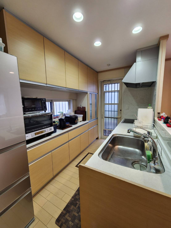 システムキッチンで収納力も高いのが嬉しいポイントです。ご家族と一緒にお料理を楽しめます。