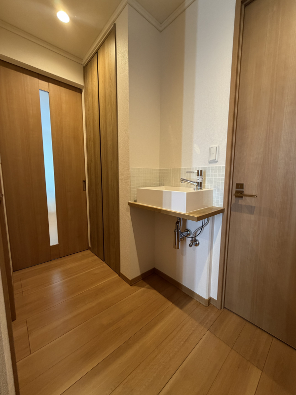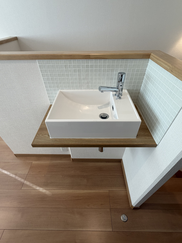 玄関ホールには手洗いスペースもございます。お客様がいらした際にも気兼ねなくご使用いただけます。