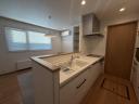 カウンタータイプの開放的なキッチン。コンロ前は壁になっておりますので油はねのお手入れもしやすいです。