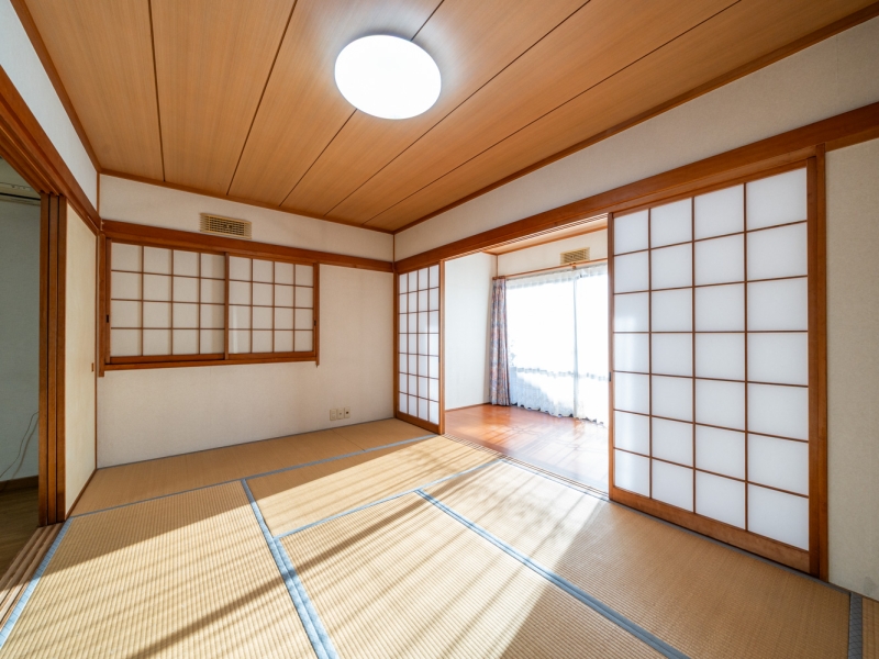 リビングに隣接した約8帖の和室。押入を完備し、引き戸を閉めれば独立空間として利用可能
