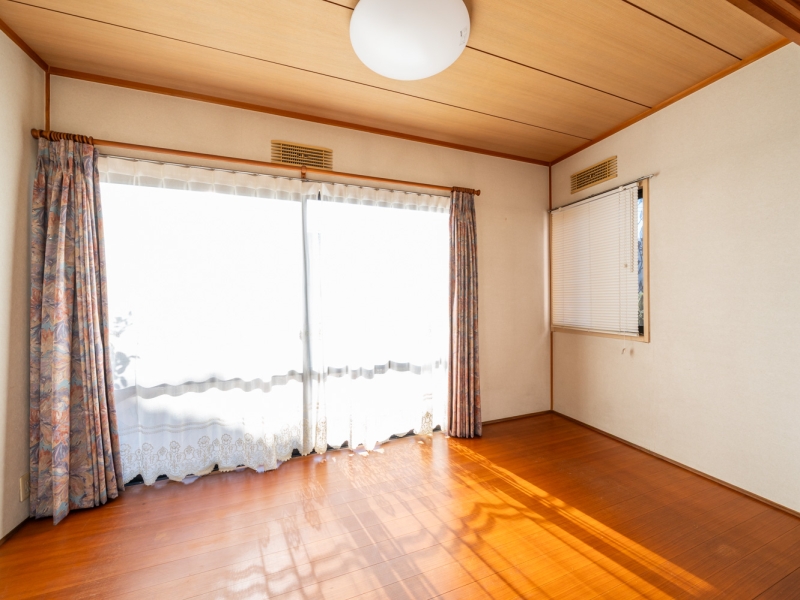 1階5.5帖の洋室は庭へ出入り可能。採光・通風良好で外干しにも便利です。