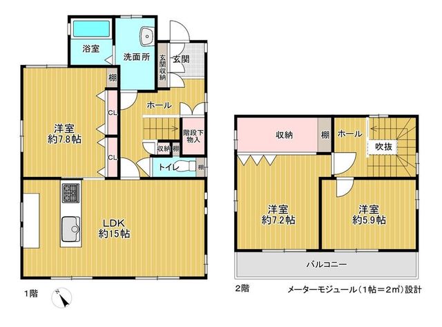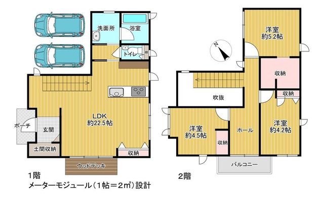 2019年6月築、2階建「5LDK」。カースペース2台分付き。