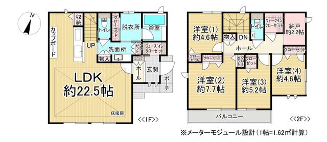 ●軽量鉄骨造2階建の「5LDK+WIC+納戸」。