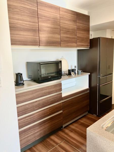 ○南向き約19.7帖のLDK導線に優れたカウンターキッチン横のマグネットボードが特徴